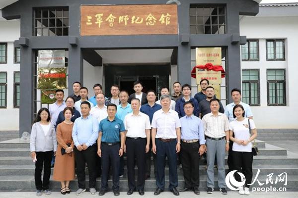 在三軍會師紀(jì)念館前合影 人民網(wǎng)何卓彥攝
