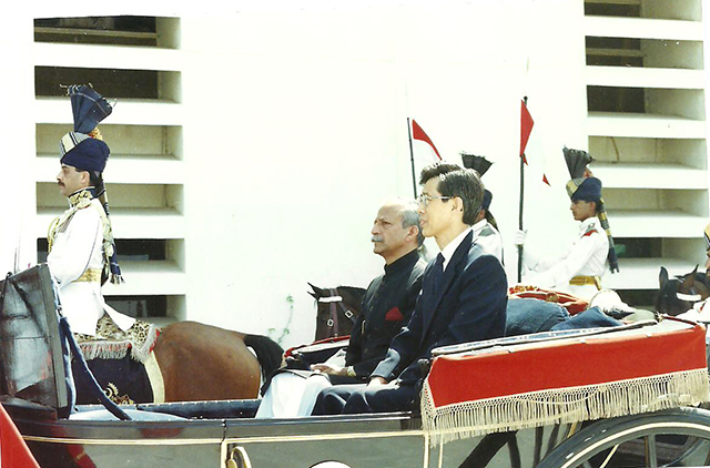 1991年5月18日,由巴基斯坦外交部禮賓司副司長(zhǎng)陪同,周剛大使乘馬車去向巴總統(tǒng)遞交國(guó)書。(圖片由受訪者提供)