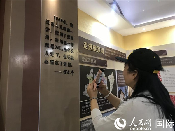 在梁家河村史館,留學(xué)人員代表正拍攝照片(徐祥麗 攝)