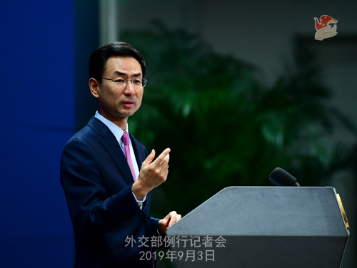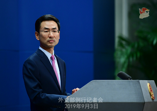 人民網(wǎng)北京9月3日電 據(jù)外交部網(wǎng)站消息,外交部發(fā)言人耿爽今日主持例行記者會。