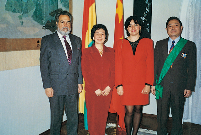 湯銘新接受玻利維亞總統(tǒng)授予的勛章