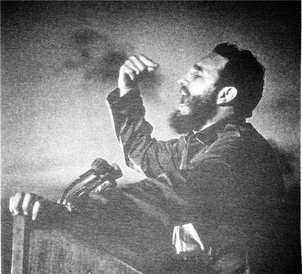 卡斯特羅振臂高呼,宣告古中建交。(照片由黃志良提供)