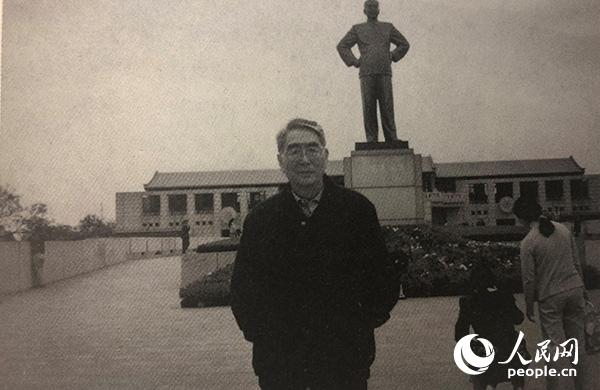2002年5月,朱祥忠在淮安周恩來(lái)總理紀(jì)念館前留影。(資料圖)
