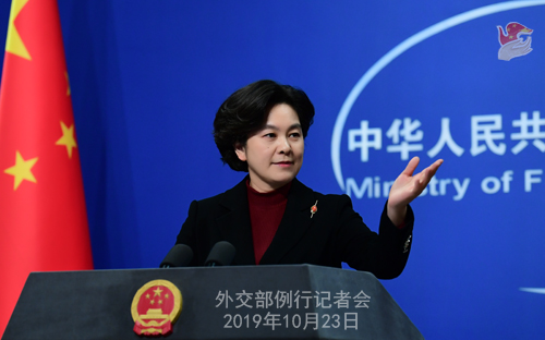 人民網(wǎng)北京10月23日電 據(jù)外交部網(wǎng)站消息,外交部發(fā)言人華春瑩今日主持例行記者會(huì)。