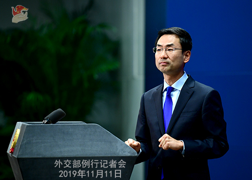 人民網(wǎng)北京11月11日電 據(jù)外交部網(wǎng)站消息,外交部發(fā)言人耿爽今日主持例行記者會(huì)。