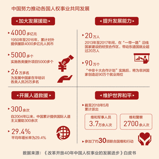 中國外交部人權事務特別代表劉華指出,中國在對外援助中始終遵循四原則:一是平等。二是互利。三是開放。四是可持續(xù)!凹纫屪约哼^得好,也要讓別人過得好。”中國創(chuàng)新南南合作方式,提供力所能及的幫助,是中國對外援助的特色。