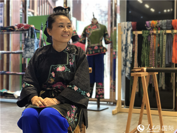 繡娘石美梅正一針一線地繡著艷麗的牡丹。從12歲就開始學習苗繡的她,已堅持苗繡30多年。在十八洞村因地制宜發(fā)展特色產業(yè)后,代代相傳的苗繡為這里的百姓創(chuàng)造出美好明天。“以前,繡一個衣服上的花紋只能賣出一兩塊錢。現(xiàn)在可以賣到幾十、甚至幾百塊!笔烂氛f:“自2013年習近平總書記來考察后,苗繡產業(yè)便得到了發(fā)展!