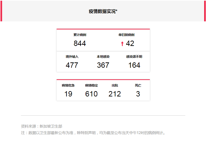 據(jù)新加坡《聯(lián)合早報(bào)》,截至3月30日12時,新加坡累計(jì)確診新冠肺炎病例844例,死亡3例。