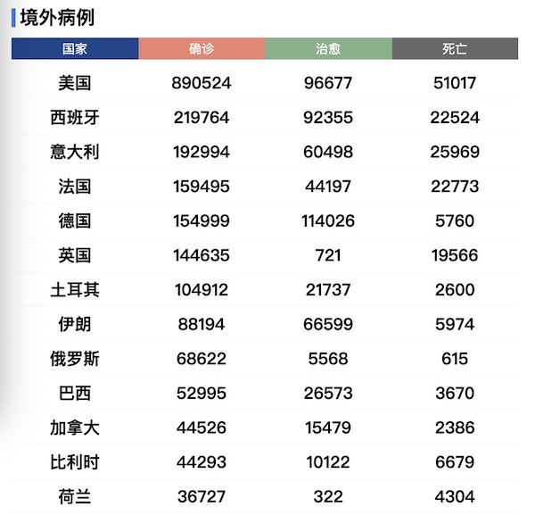 截至美國(guó)東部時(shí)間24日11時(shí)(北京時(shí)間24日23時(shí)),美國(guó)累計(jì)死亡病例超過(guò)5萬(wàn)例,達(dá)到50031例。
