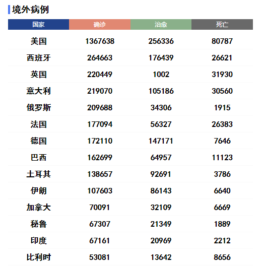 全球新冠肺炎確診病例已超400萬例 其中美國超130萬例