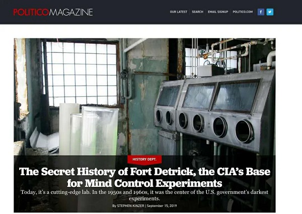 2019年7月,美軍最大的生化武器研發(fā)中心——位于馬里蘭州的德特里克堡生物基地被美國疾控中心調(diào)查并關(guān)閉。該實驗室疑點重重,被美國媒體稱作“美國政府最黑暗實驗中心”。圖為美國“政治”新聞網(wǎng)站報道截圖。