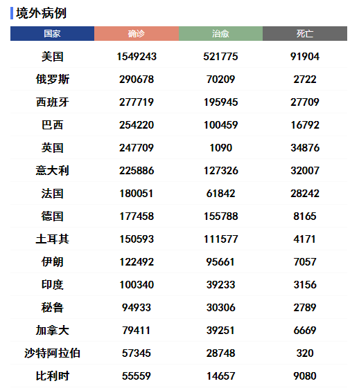 全球范圍內,新冠確診病例較前一日增加93324例,達到4618821例;死亡病例較前一日增加4452例,達到311847例。