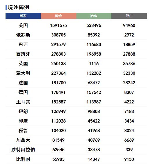 全球疫情要覽(5月17日)全球確診超460萬(wàn) 俄羅斯國(guó)內(nèi)國(guó)際交通近期將恢復(fù)