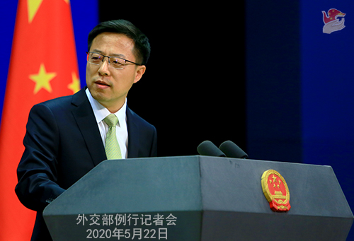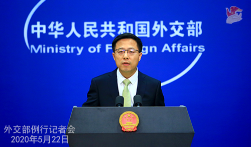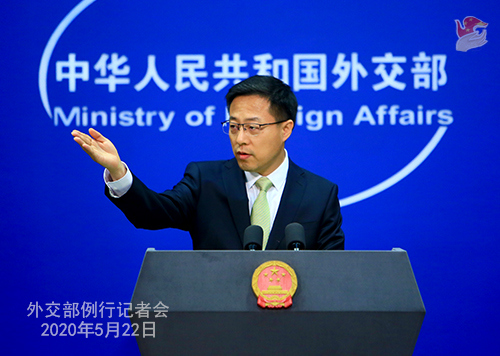 人民網(wǎng)北京5月22日電 據(jù)外交部網(wǎng)站消息,外交部發(fā)言人趙立堅(jiān)主持今日例行記者會(huì)。