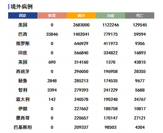 全球范圍內(nèi),新冠確診病例較前一日增加163865例,達(dá)到10185374例;死亡病例較前一日增加3946例,達(dá)到503862例。