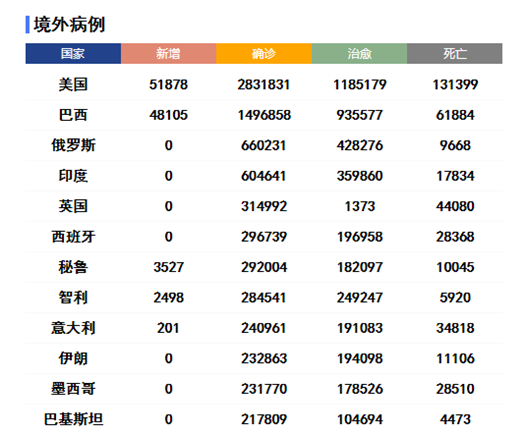 全球范圍內(nèi),新冠確診病例較前一日增加176102例,達到10533779例;死亡病例較前一日增加4787例,達到512842例。
