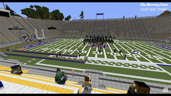 加大伯克利學(xué)生在“我的世界”中參加畢業(yè)典禮(圖片來(lái)源:Mercury News報(bào)道截圖)