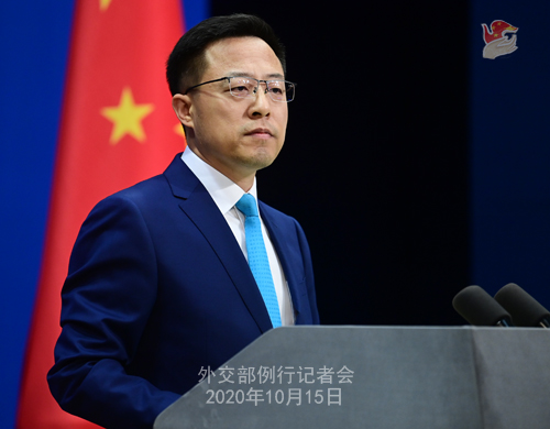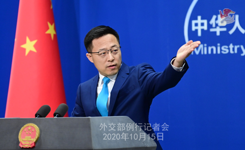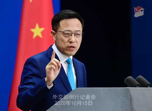 人民網(wǎng)北京10月15日電 據(jù)外交部網(wǎng)站消息,外交部發(fā)言人趙立堅(jiān)主持今日例行記者會(huì)。