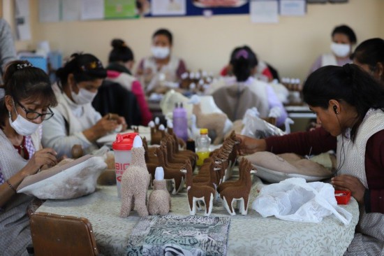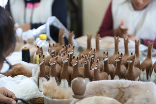 用羊駝毛皮制作的玩偶也是當?shù)靥厣止に嚻?/p>