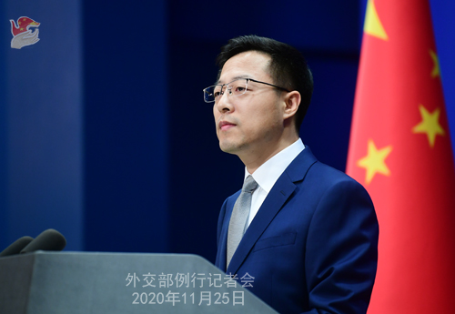 人民網(wǎng)北京11月25日電 據(jù)外交部網(wǎng)站消息,外交部發(fā)言人趙立堅主持今日例行記者會。