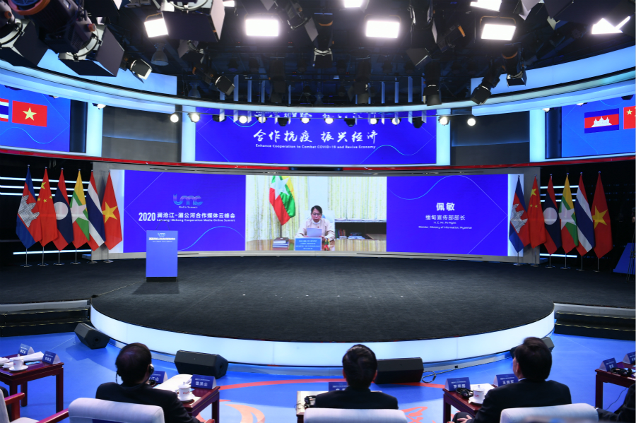 緬甸宣傳部部長(zhǎng)佩敏參加2020瀾滄江-湄公河合作媒體云峰會(huì)并視頻致辭 (人民網(wǎng)記者 翁奇羽攝)
