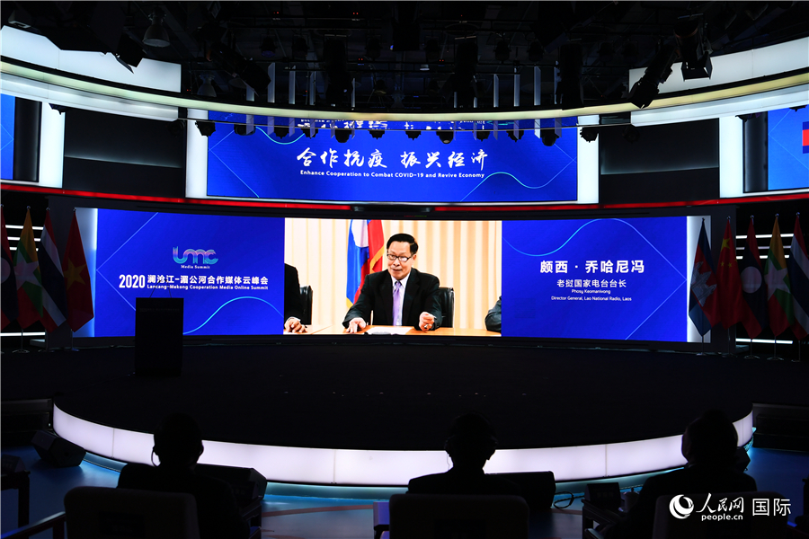 老撾國家電臺臺長頗西·喬哈尼馮參加2020瀾滄江-湄公河合作媒體云峰會并視頻致辭(人民網(wǎng)記者 翁奇羽攝)