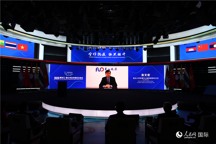 復旦大學附屬華山醫(yī)院感染科主任張文宏參加2020瀾滄江-湄公河合作媒體云峰會并視頻致辭(人民網(wǎng)記者 翁奇羽攝)
