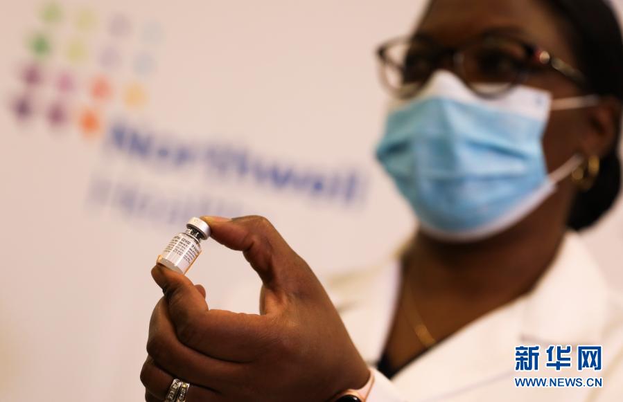 12月14日,在美國紐約長島猶太醫(yī)療中心,一名醫(yī)護人員為新冠疫苗接種作準備。新華社記者 王迎 攝