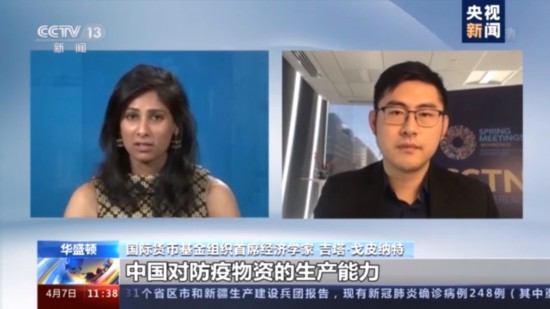 國際貨幣基金組織首席經(jīng)濟(jì)學(xué)家 吉塔·戈皮納特:中國是一個主要的經(jīng)濟(jì)體,在全球經(jīng)濟(jì)中扮演核心角色,可以幫助全球?qū)崿F(xiàn)更強(qiáng)勁的復(fù)蘇,中國對防疫物資的生產(chǎn)能力,對全球來說非常重要,因?yàn)榭梢赃_(dá)到滿足國際需求的生產(chǎn)能力。