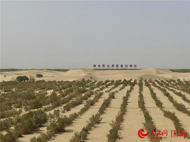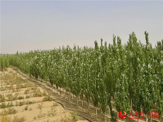 麥蓋提縣防風(fēng)固沙生態(tài)林基地。人民網(wǎng) 張榮攝