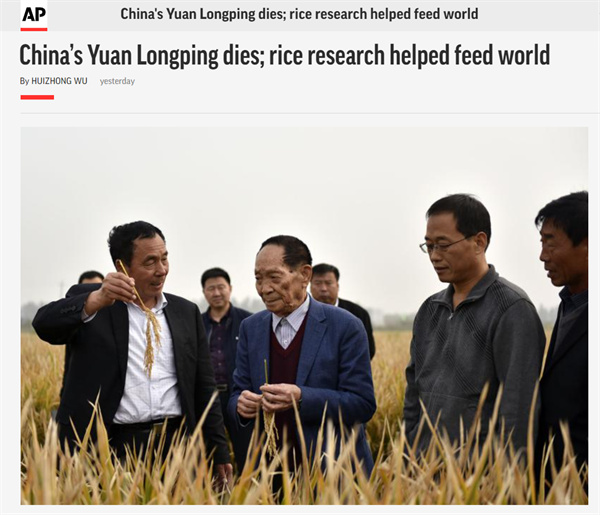 外媒眼中的袁隆平:為全球糧食安全作出了杰出貢獻(xiàn)