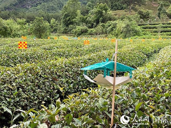 燕子窠生態(tài)茶園中用于防蟲的性誘劑裝置。人民網(wǎng) 吳思萱攝