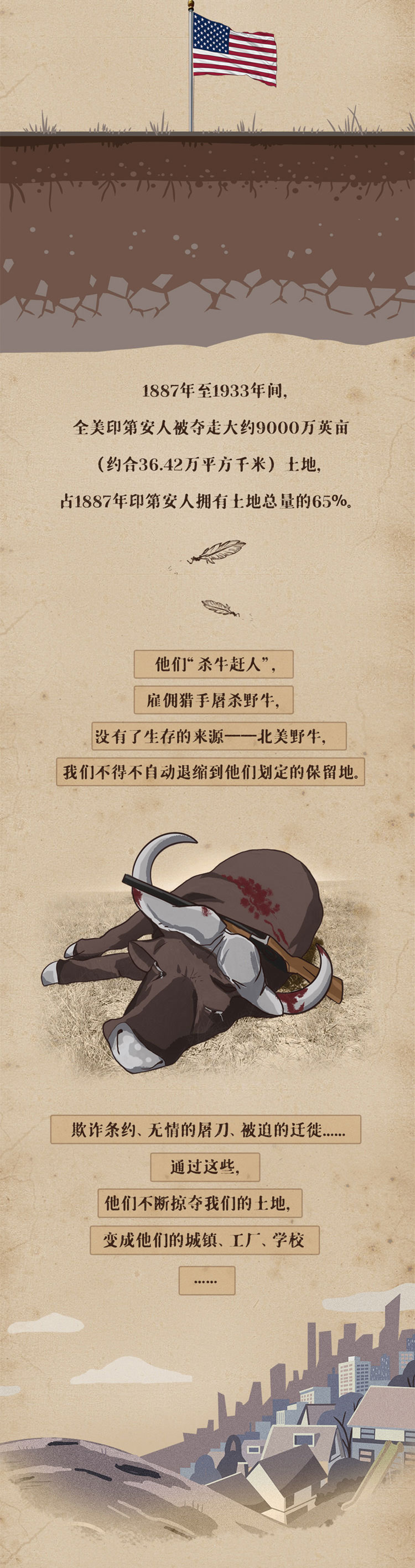 編者按:長期以來,美國一邊自欺欺人標榜自己是所謂的“人權(quán)楷模”,一邊肆無忌憚在人權(quán)問題上玩弄雙重標準,將人權(quán)作為維護自身霸權(quán)的工具。事實上,歷史和現(xiàn)實早已記錄下了美國侵犯人權(quán)的條條罪狀:印第安人慘遭殺戮、少數(shù)族裔飽受欺凌,多國因為美國肆意發(fā)動戰(zhàn)爭生靈涂炭……任何遮羞布都已無法遮住美國作過的惡,美國的人權(quán)劣跡可謂是罄竹難書。