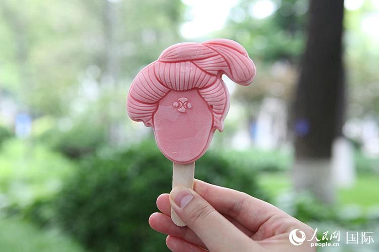 陜西展臺(tái)推出的唐朝仕女冰激凌很受歡迎。人民網(wǎng)記者 張麗婭攝