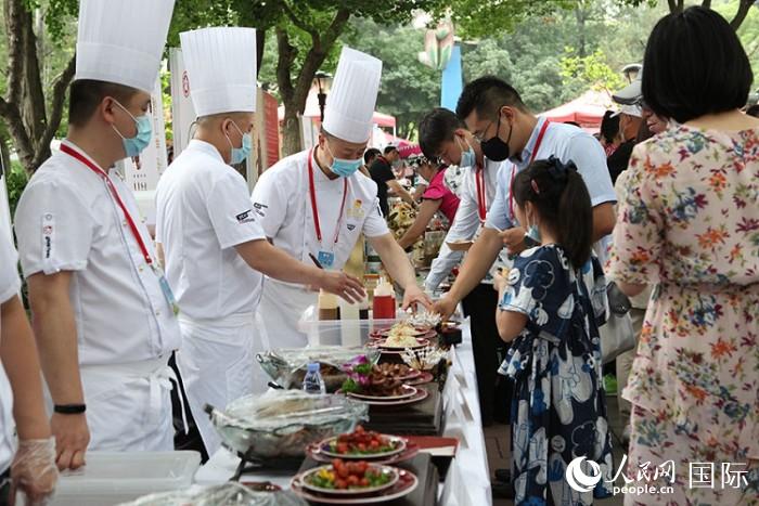 各地特色美食展臺(tái)。人民網(wǎng)記者 張麗婭攝