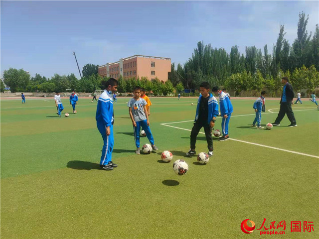 阿瓦提鄉(xiāng)中心小學的孩子在操場練習踢球 人民網(wǎng) 徐祥麗攝