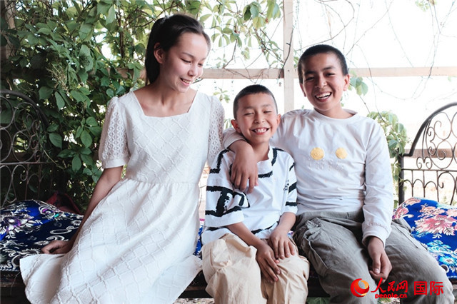 買買提江家的姐弟三個在院子里合影 人民網(wǎng)記者 寇杰攝