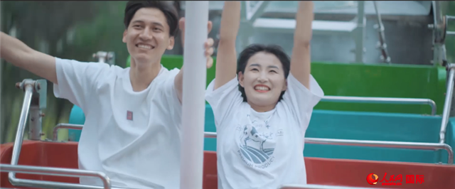 木扎提和汝海婭坐在碰碰船上 人民網(wǎng) 劉寧攝
