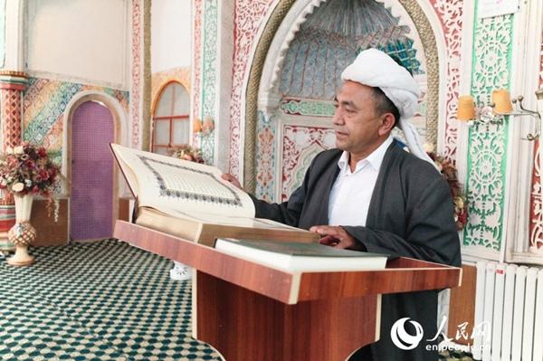 玉吉米力克清真寺伊瑪目阿卜杜如蘇力·謝木西丁。人民網(wǎng)記者 寇杰攝