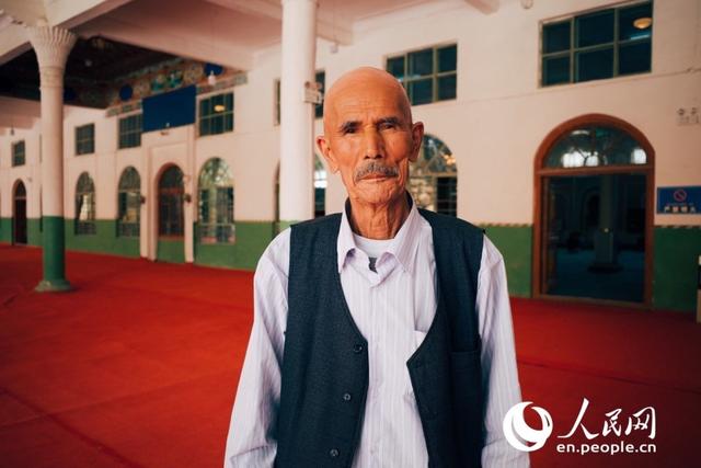 來玉吉米力克清真寺做禮拜的老人迪喀爾·玉蘇普。人民網(wǎng)記者 寇杰攝
