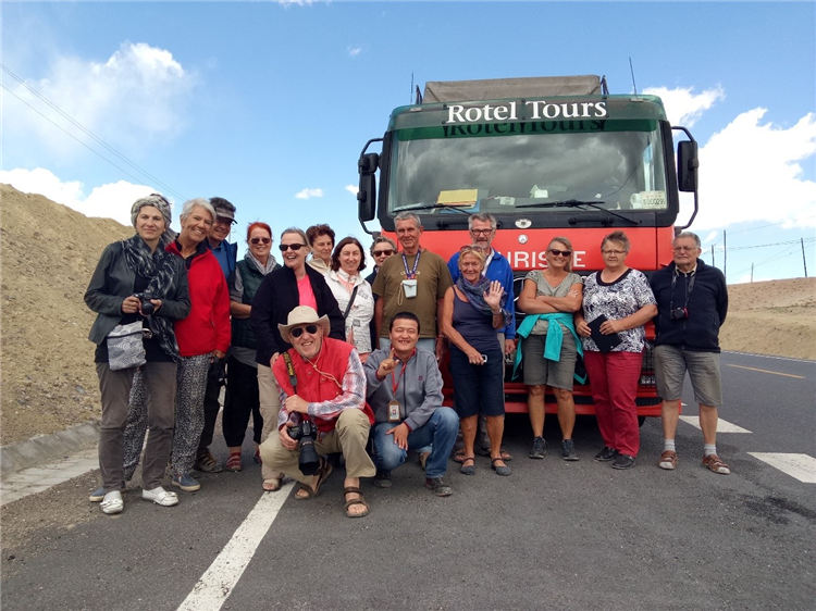 木耳莎力帶領(lǐng)德國Rotel房車旅游團(tuán)在帕米爾高原游玩。受訪者供圖