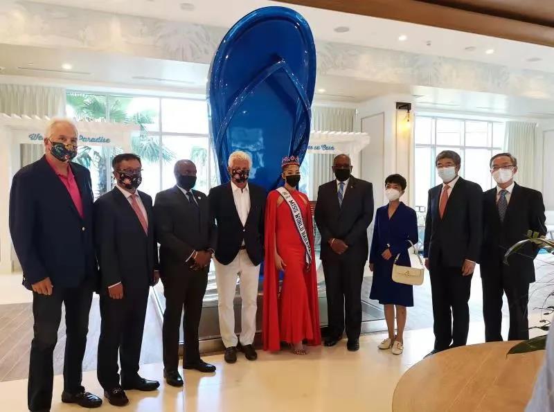 明尼斯總理(右四)與戴慶利大使(右三)等兩國(guó)嘉賓出席綜合體項(xiàng)目開業(yè)儀式。中國(guó)駐巴哈馬大使館供圖