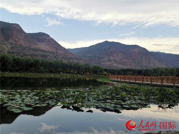 西寧北山美麗園中荷花灣里倒映著北山。人民網 楊倩攝
