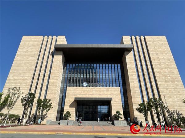 西寧市市民中心建筑雄渾大氣,體現(xiàn)河湟民居風格。 人民網 謝瑩攝