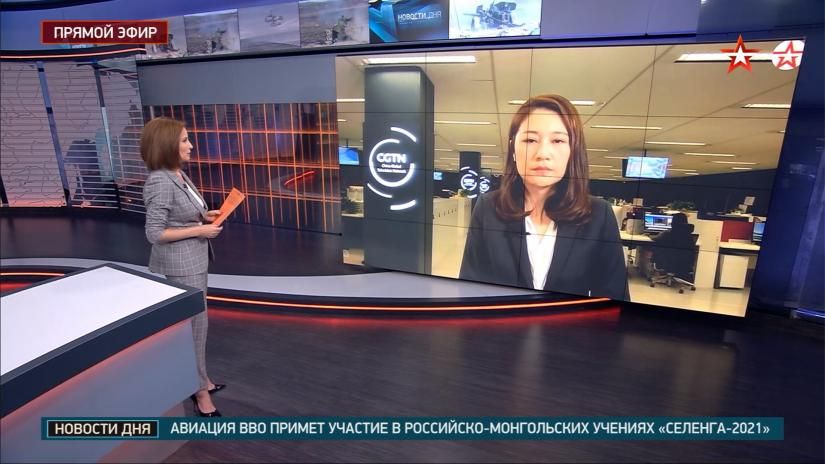 △俄羅斯紅星電視臺(tái)連線CGTN俄語(yǔ)部記者王毓韻