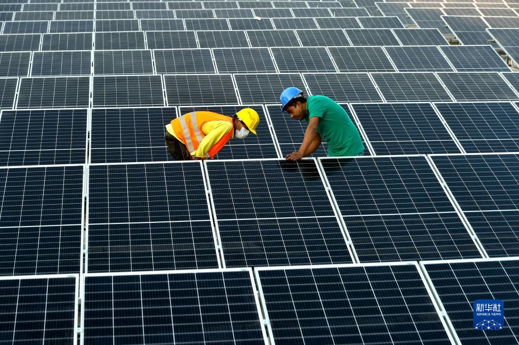 1月3日,在位于孟加拉國首都達(dá)卡郊區(qū)的利德成集團(tuán)廠區(qū),工人們在房頂組裝光伏模組。從2020年開始,中資制衣類企業(yè)——利德成集團(tuán)在其位于孟加拉國達(dá)卡的廠區(qū)內(nèi)建設(shè)光伏電站,以降低對(duì)傳統(tǒng)能源的依賴,減少碳排放,從綠色發(fā)展的角度助力“一帶一路”建設(shè)。新華社發(fā)
