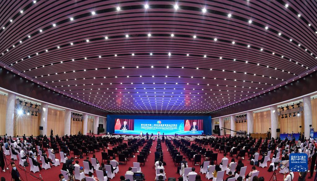 這是8月19日在銀川拍攝的第五屆中國-阿拉伯國家博覽會(huì)開幕式現(xiàn)場。新華社記者 王鵬 攝