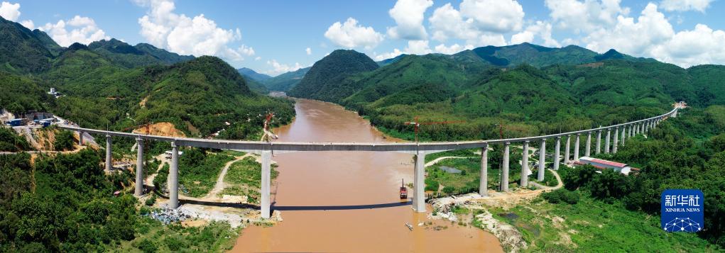 這是2020年7月24日在老撾拍攝的中老鐵路班納漢湄公河特大橋。中老鐵路是中國“一帶一路”倡議與老撾“變陸鎖國為陸聯(lián)國”戰(zhàn)略對(duì)接項(xiàng)目。新華社發(fā)(潘龍柱 攝)