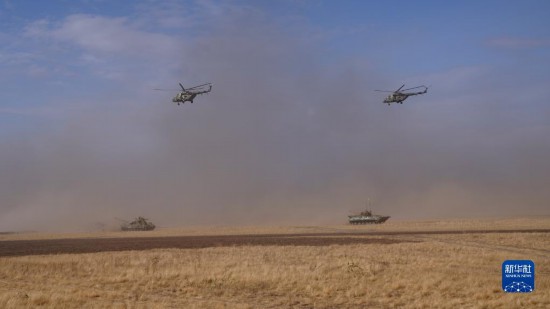 9月23日,在俄羅斯奧倫堡州東古茲靶場舉行的“和平使命-2021”上海合作組織聯(lián)合反恐軍事演習(xí)實(shí)兵實(shí)彈演習(xí)中,多國聯(lián)合部隊(duì)進(jìn)行陸空協(xié)同作戰(zhàn)。新華社記者 梅世雄 攝