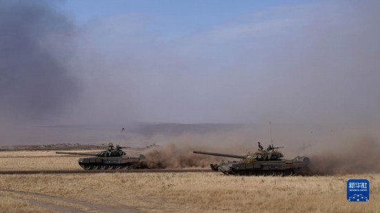 9月23日,在俄羅斯奧倫堡州東古茲靶場舉行的“和平使命-2021”上海合作組織聯(lián)合反恐軍事演習(xí)實(shí)兵實(shí)彈演習(xí)中,多國聯(lián)合部隊(duì)地面突擊群坦克部隊(duì)迅猛出擊。新華社記者 梅世雄 攝